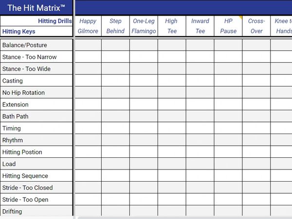 The Hit Matrix™ is the identification of common hitting faults matched to corrective video hitting drills to help become a consistent hitter. Get 50+ drills to master the keys to hitting -